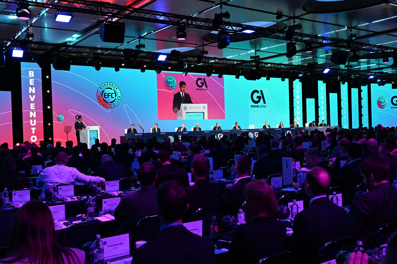 Nous avons accompagné l’EFC (European Football Clubs) à l’occasion du GA 2025 à Rome, dans la conception et le déploiement de la signalétique et des supports graphiques de l’événement.La mission a porté sur la création des fichiers graphiques, l’assurance de leur cohérence visuelle et le suivi de leur bonne mise en œuvre sur site, afin de garantir une expérience fluide et qualitative tout au long de l’événement.